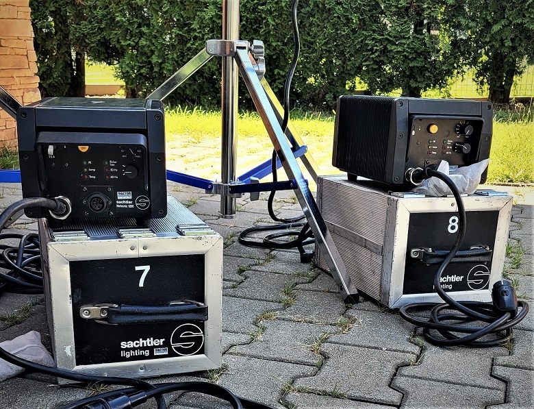 W oświtlenia jest 4 lampy Flo o temp barwy 5600 i mocy 2x800W i 2x600W na statywach amortyzujących. Dodatkowo filtry do barwy 3200